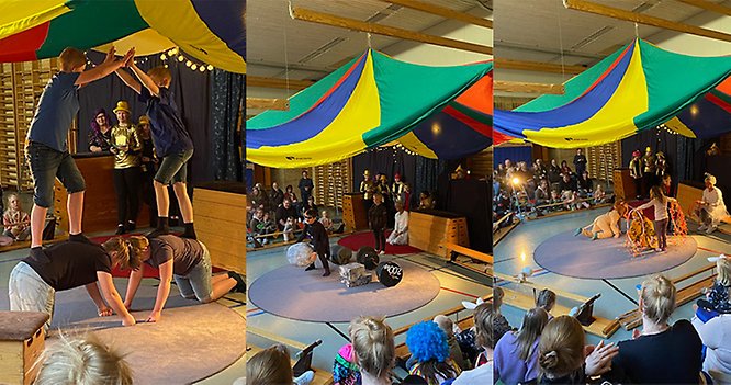 Starke Adolf, akrobater och vilda djur. Alla intog de manegen i Bredöl när eleverna vid skolan bjöd in anhöriga till cirkusföreställning. -