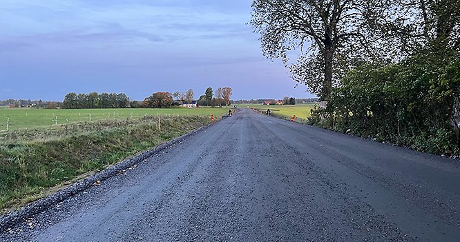 Vecka 42 börjar asfalteringen av vägen mellan Nossebro och Fåglum. Ett arbete som väntas ta ungefär en vecka. Efter ytterligare några veckor ska sträckan mellan Fåglum och E20 asfalteras.