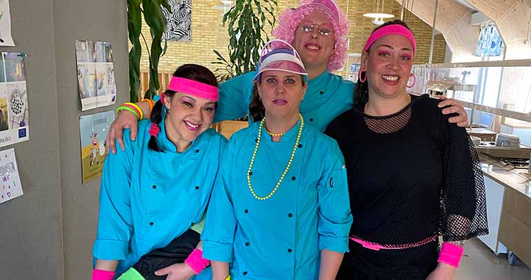 Tuperade luggar, turkos mascara och benvärmare. Tre klassiker från 1984 som inspirerade medarbetare i de kommunala köken i Essunga kommun under vecka 16. Verksamheten uppmärksammade nämligen att Essunga firar 40 år som kommun. Medarbetarna i köken uppmuntrades hitta de rätta 80-talsvibbarna samtidigt som de tillagade retrorätter.