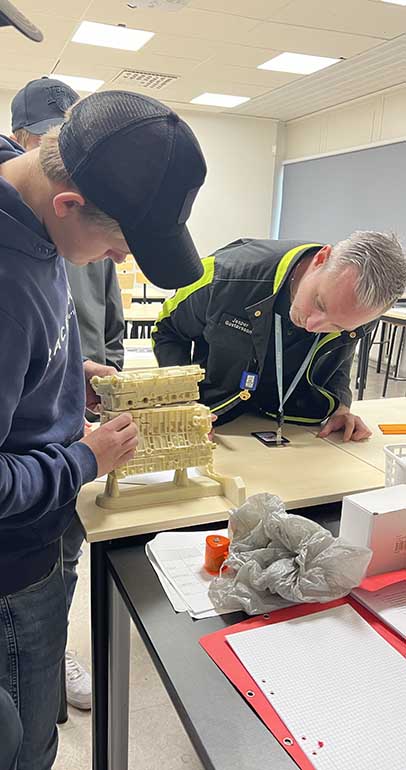Hon och hennes kollega från Volvo Powertrain intog ett av klassrummen där eleverna klurade på olika matematiska problem. På plats i skolan fanns även representanter från Länsförsäkringar, Ung Företagsamhet och Aurobay.