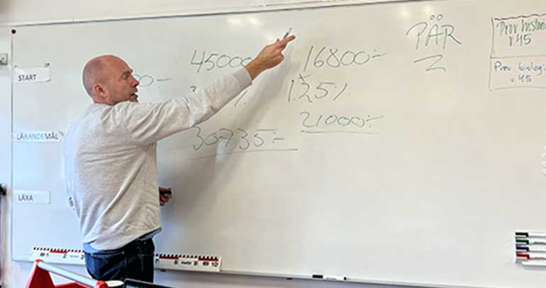Eleverna fick räkna på matteuppgifterna som företagen har gjort men det blev även mycket prat om jobb och framtid, konstaterar Pär Nershed på företaget Studieinspiration AB som arrangerade dagen kostnadsfritt för kommunen.