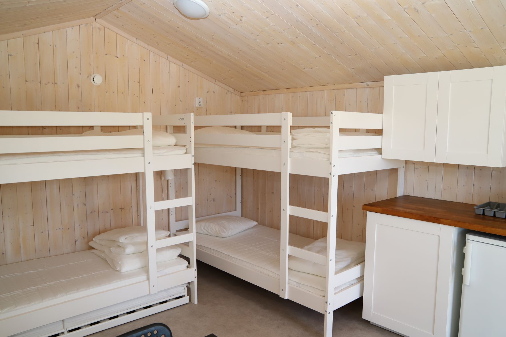 I våra familjestugor finns 2 våningsängar och en utragssäng. Stugan har vattenkokare, kaffebryggare samt kyl. I alla stugor finns täcke och kudde.Toalett och dusch finns i nära anslutning till stugorna.